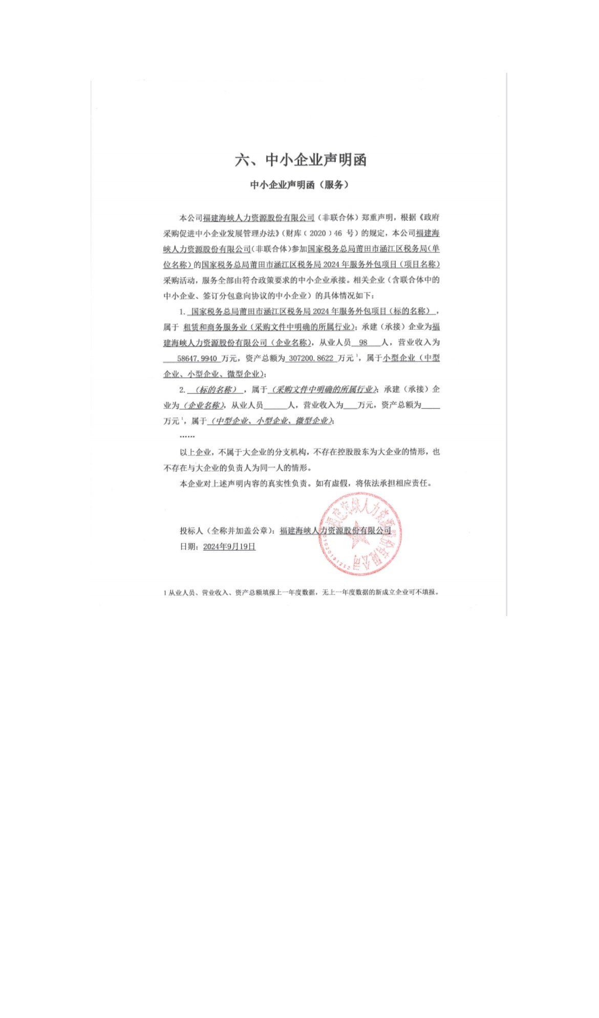 供应商名称:福建海峡人力资源股份有限公司