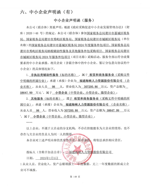 (合同包1)福建海峡人力资源股份有限公司 |